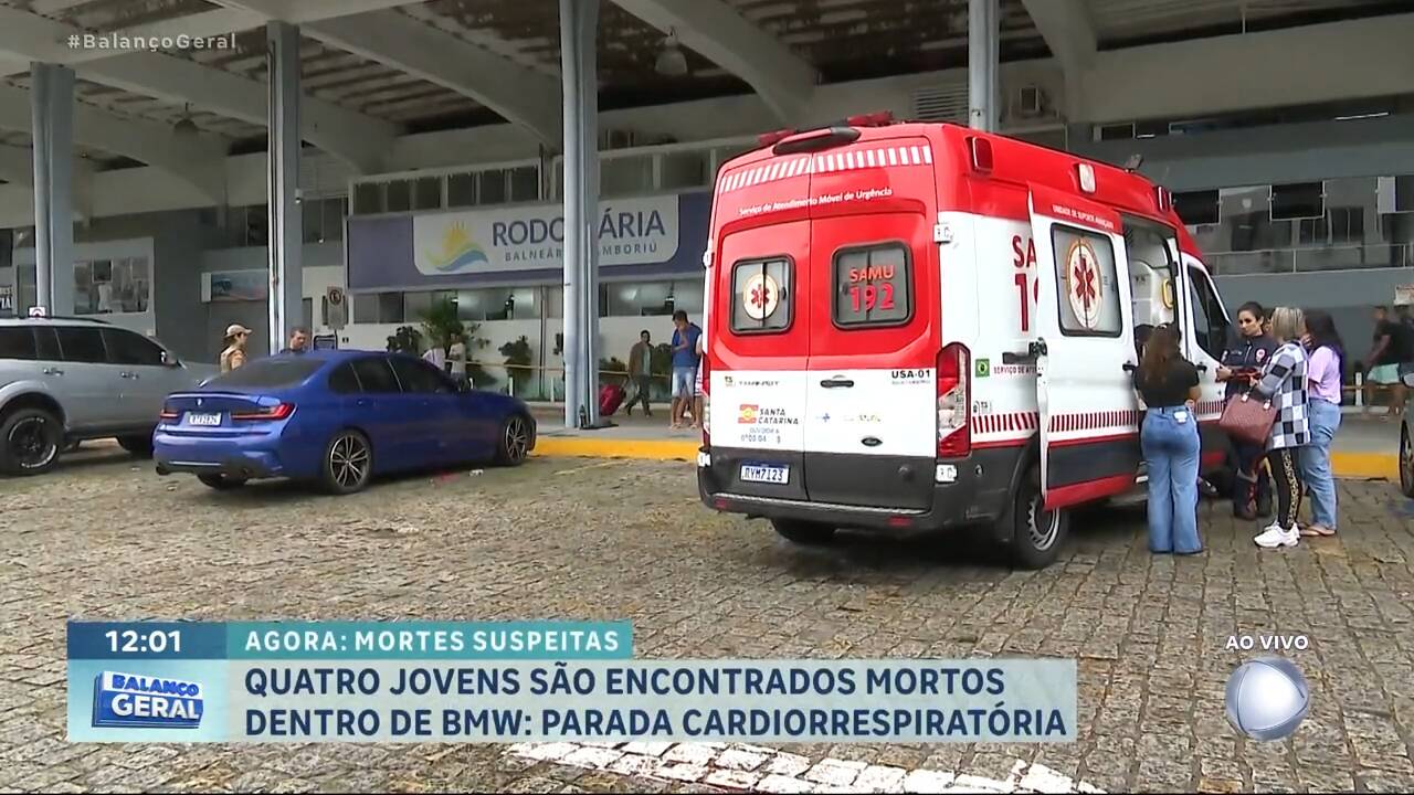 Grupo havia ido buscar a namorada de um dos jovens na rodoviária Reprodução/RECORD A namorada de um dos jovens mortos em um BMW estacionado na rodoviária de Balneário Camboriú (SC), na manhã desta segunda-feira (1º), falou à polícia que as quatro vítimas estavam mal do estômago e haviam comido cachorro-quente na praia pouco tempo antes. A Polícia Civil abriu uma investigação para apurar a causa da parada cardiorrespiratória. Uma das possibilidades é vazamento de monóxido de carbono ocorrido por uma falha mecânica no veículo. Após a ocorrência, familiares das vítimas relataram que a BMW havia passado por uma adulteração recente no escapamento, informação que agora é apurada pela polícia. A garota, de 19 anos, contou que havia acabado de chegar de Brasília, e o grupo foi buscá-la na rodoviária. Eles chegaram ao local por volta das 3h e reclamavam de enjoo e tontura. Segundo a testemunha, a única mulher do grupo, da mesma idade dela, estava pior e vomitou. O namorado dela, de 24 anos, foi ao banheiro vomitar também, mas falou que estava melhor. Cansados e ainda passando mal, optaram por ficar algum tempo no carro, com o ar-condicionado em "temperatura morna", segundo o boletim de ocorrência. A jovem que havia chegado de viagem ficou fora do veículo, mas retornou em três ocasiões para ver como eles estavam. Na última vez, por volta das 7h, percebeu que o namorado não respirava e estava sangrando pela boca. Também reparou que a outra garota, um rapaz de 21 anos e um adolescente de 16 estavam na mesma situação. O Samu e o Corpo de Bombeiros foram chamados por volta das 7h. As equipes de resgate tentaram reanimar os jovens durante 40 minutos, sem sucesso. Eles foram declarados mortos no local, todos com parada cardiorrespiratória. Aos policiais, a garota contou ainda que os pais do namorado dela também comeram o cachorro-quente do mesmo local, mas que, a princípio, não teriam passado mal.